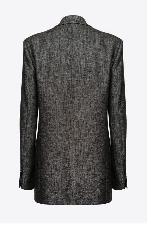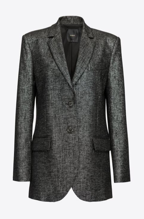 Slim-fit blazer in cotton and stretch wool sharkskin with lurex that creates a striking metallic effect. Lapel collar, long sleeves with buttoned cuffs and side pockets with flap. Lined. Single-breasted button fastening.