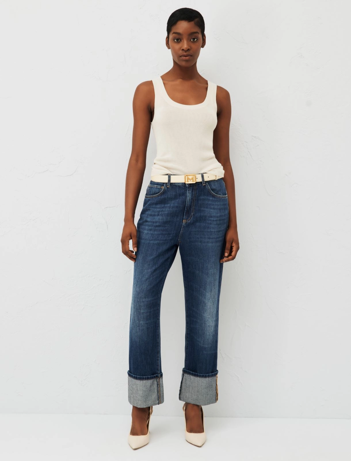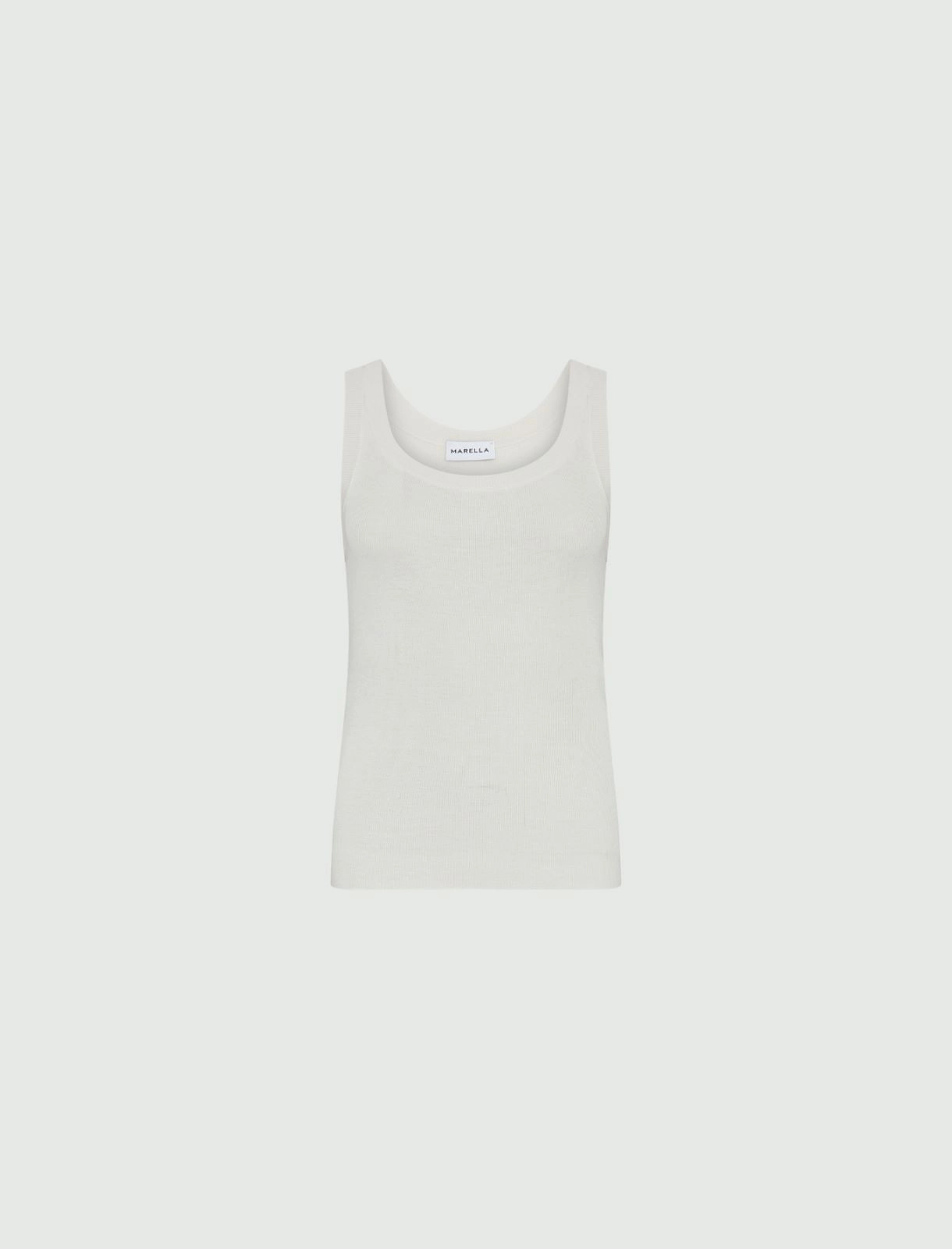 Slim-fit rib-knit top. Round-neck front and back, in addition to spaghetti straps.