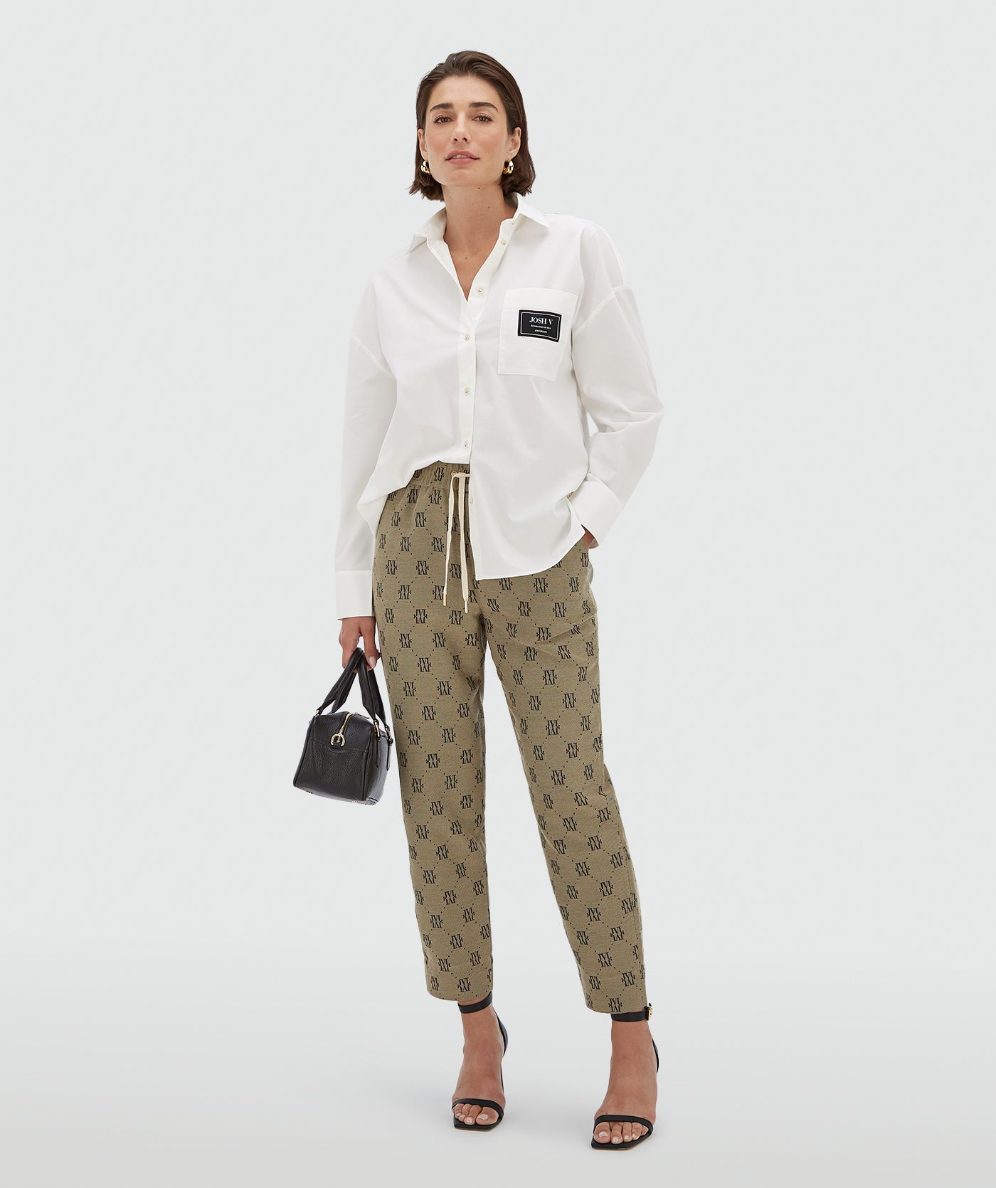 Long sleeved oversized blouse.Blouse collar, button closure,breast pocket with logo.