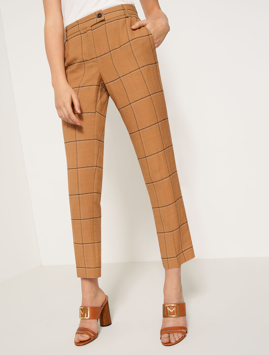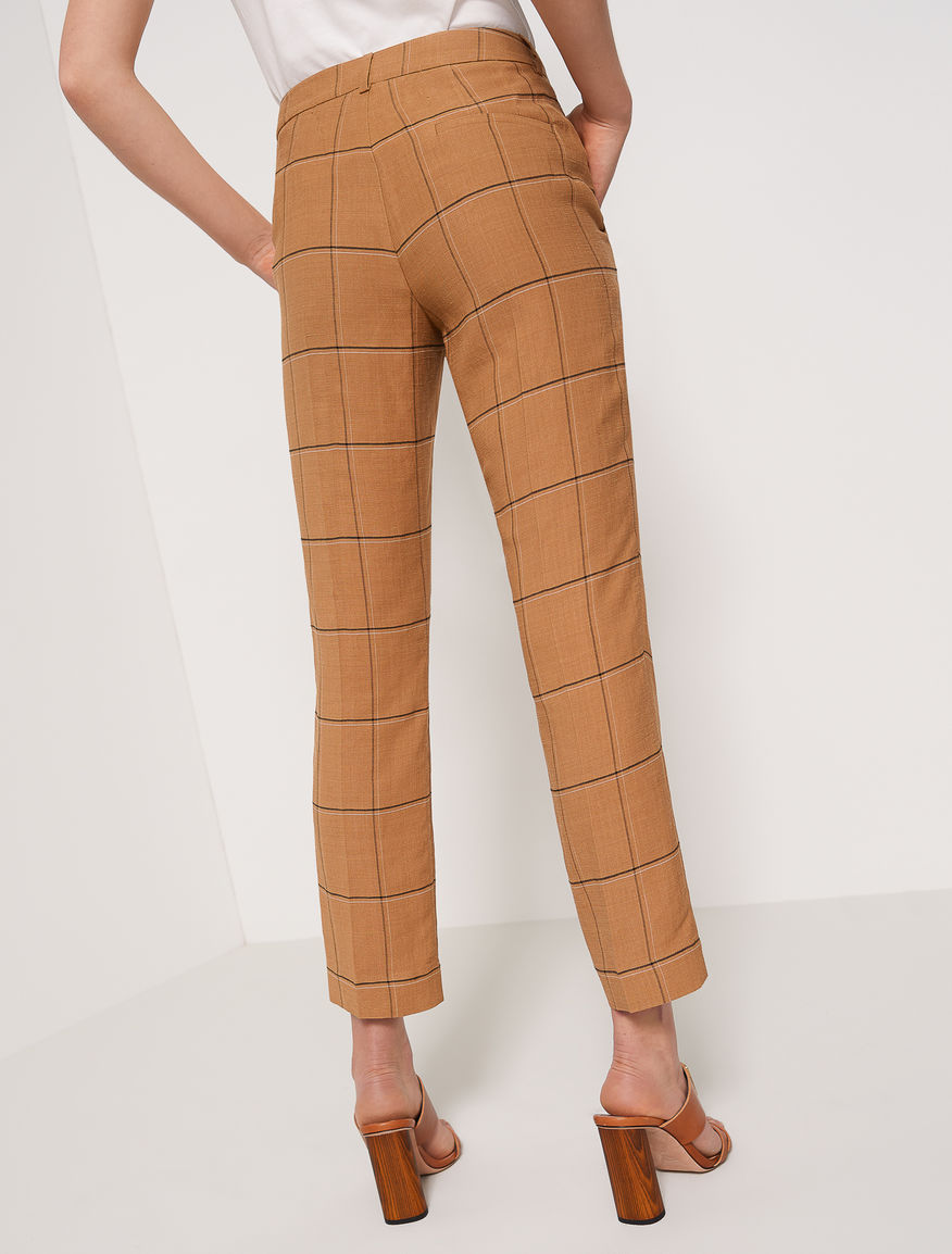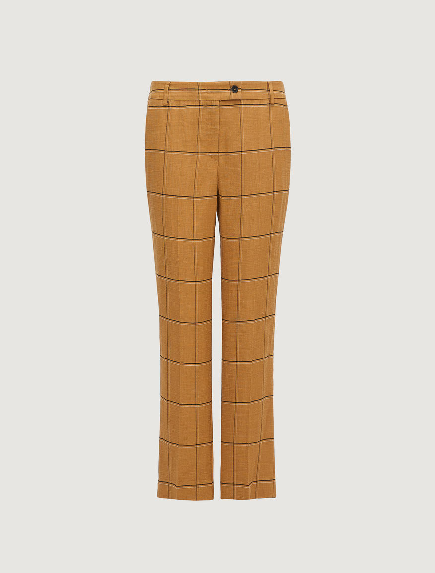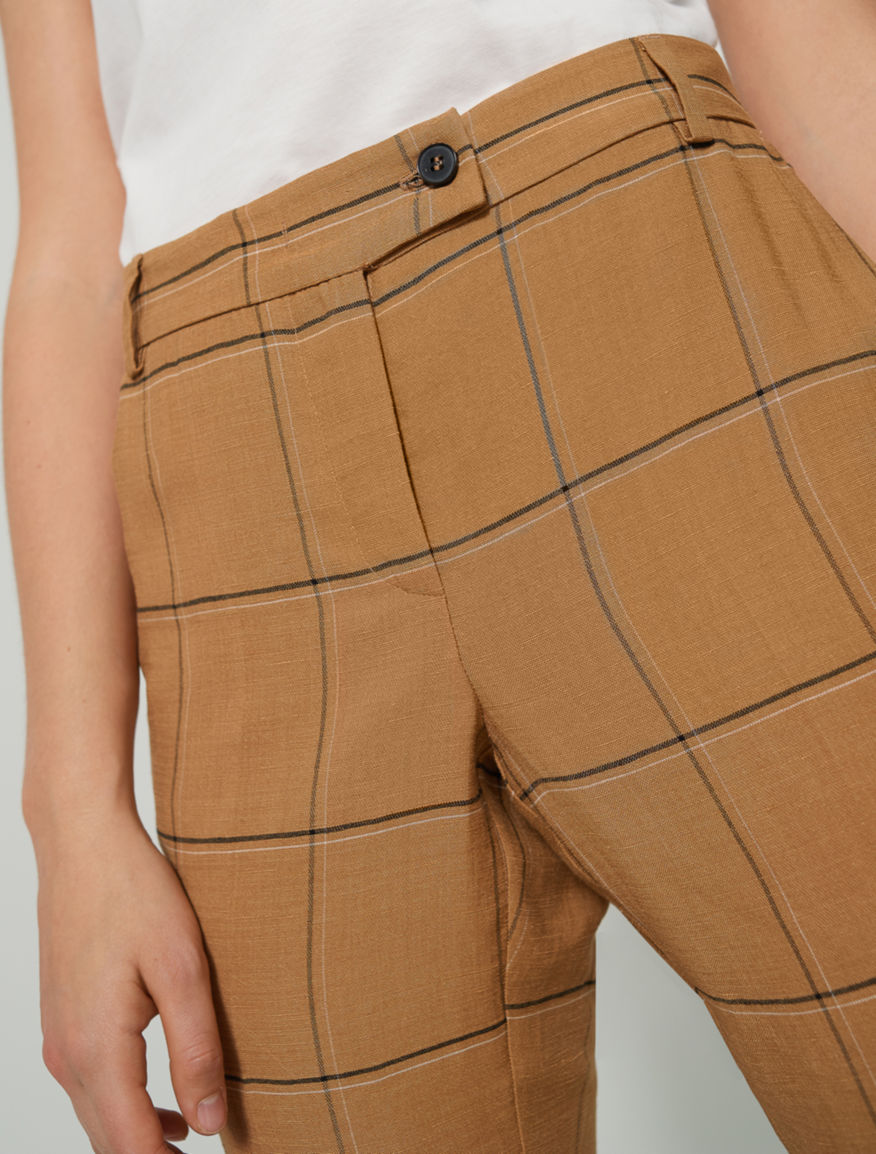 Straight-fit linen blend patterned trousers. Concealed zip and button fastening, slant pockets on the front, single welt pocket on the back. Pressed creases on front and back.