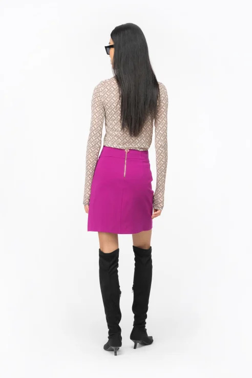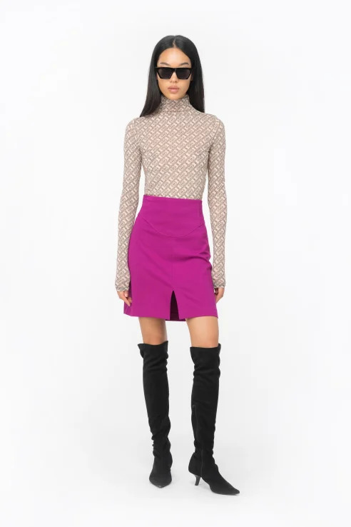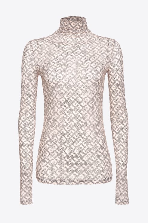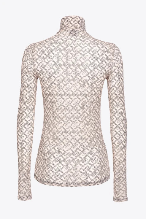 Long-sleeved mock-turtleneck sweater in soft, light and glossy charmeuse fabric with PINKO logo print all over.