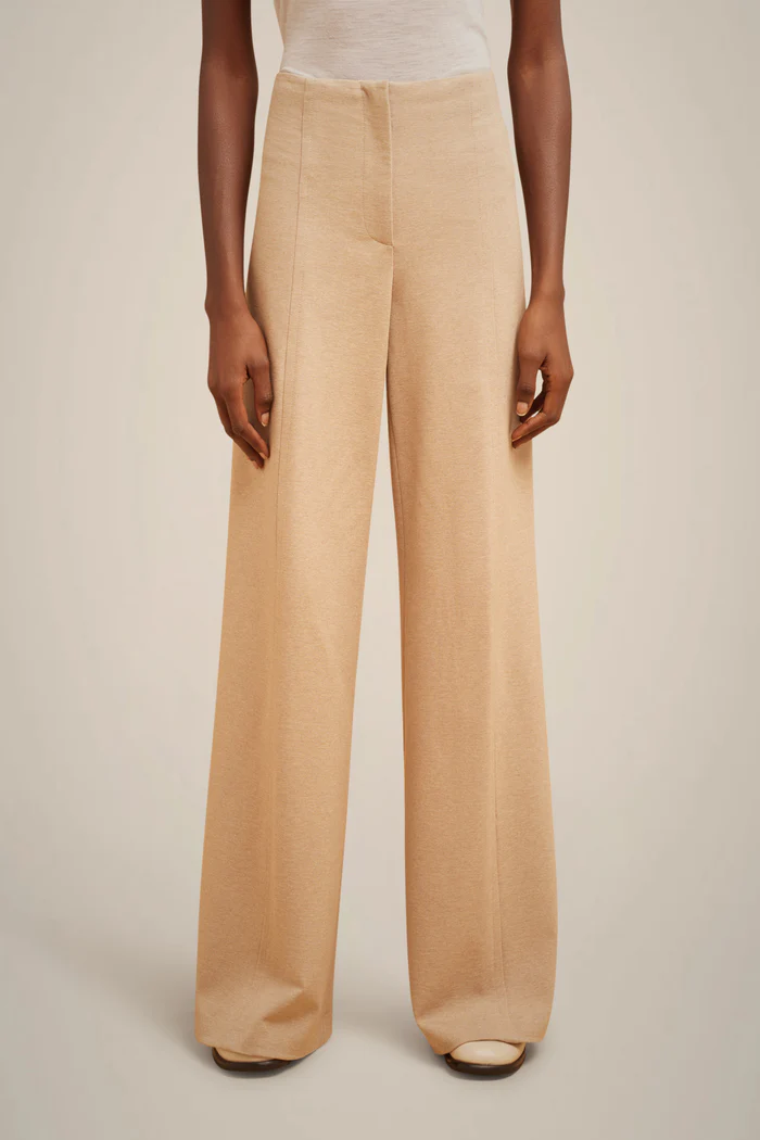 Milano Stitch palazzo trousers with center-leg cut-outs at the front and back and adjustable raw-cut bottom. Front closure with zipper and counter-button. Regular fit.