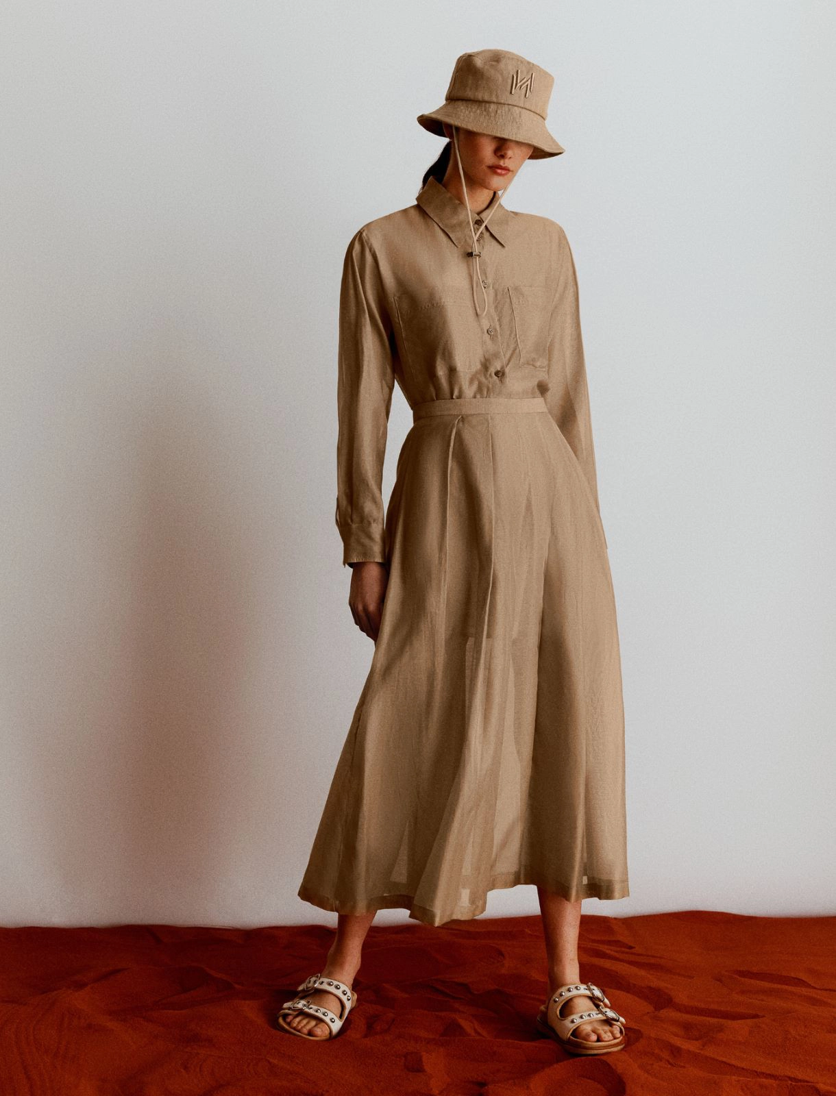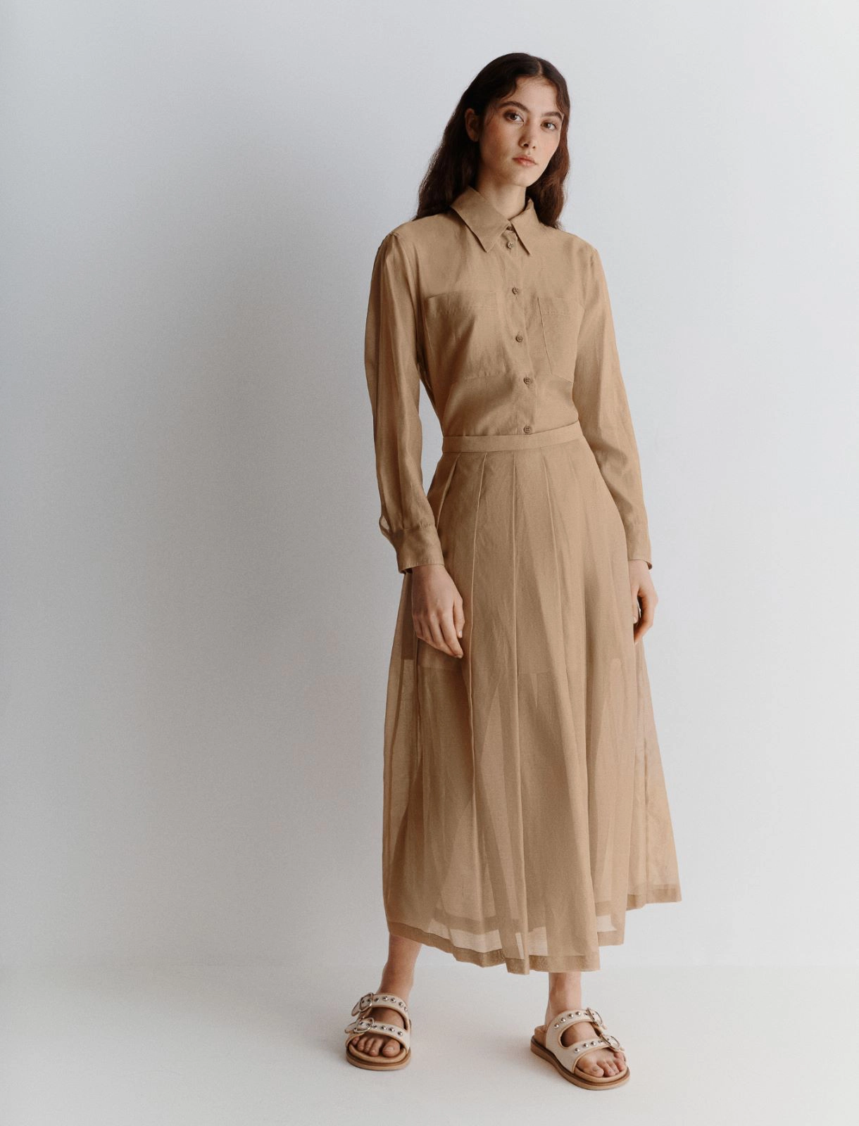 • Skirt in organza-look cotton and silk muslin fabric