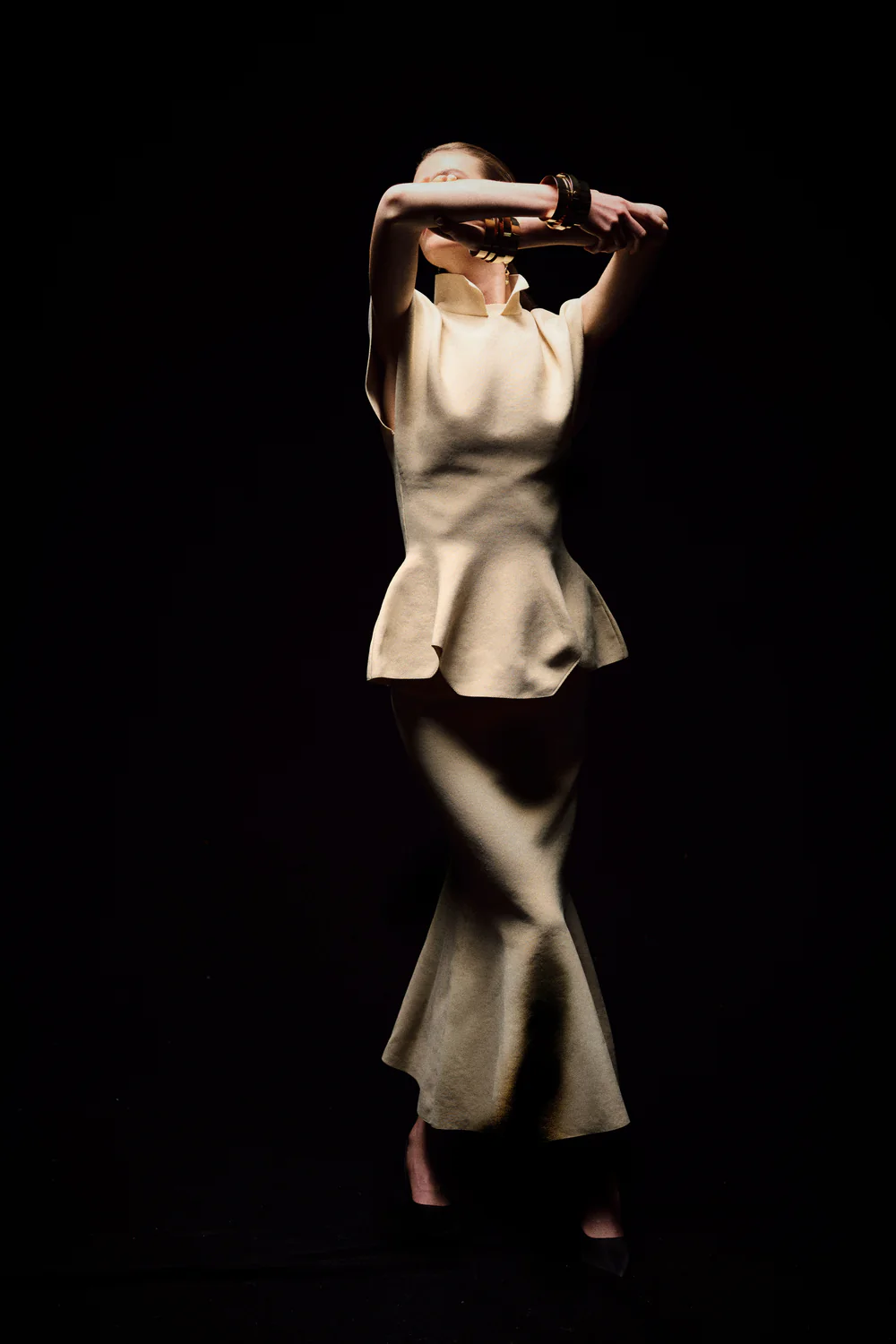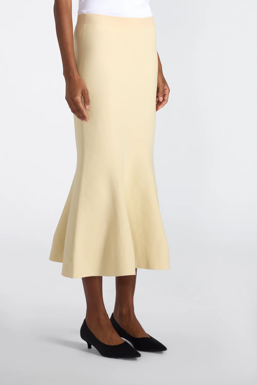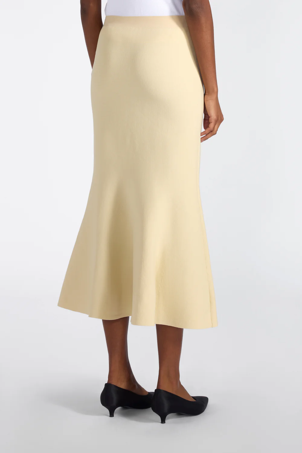 Straight midi skirt in technical nylon with ruffled detail at the bottom. waistband, sculpted silhouette.