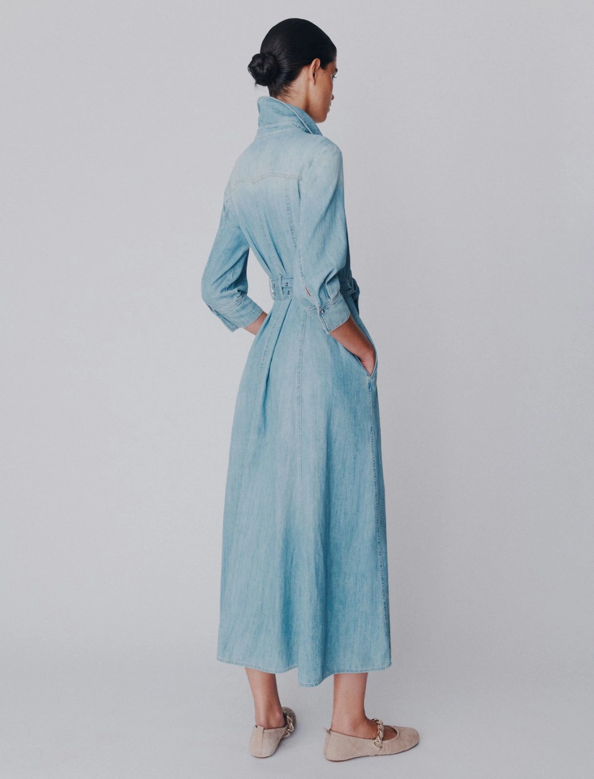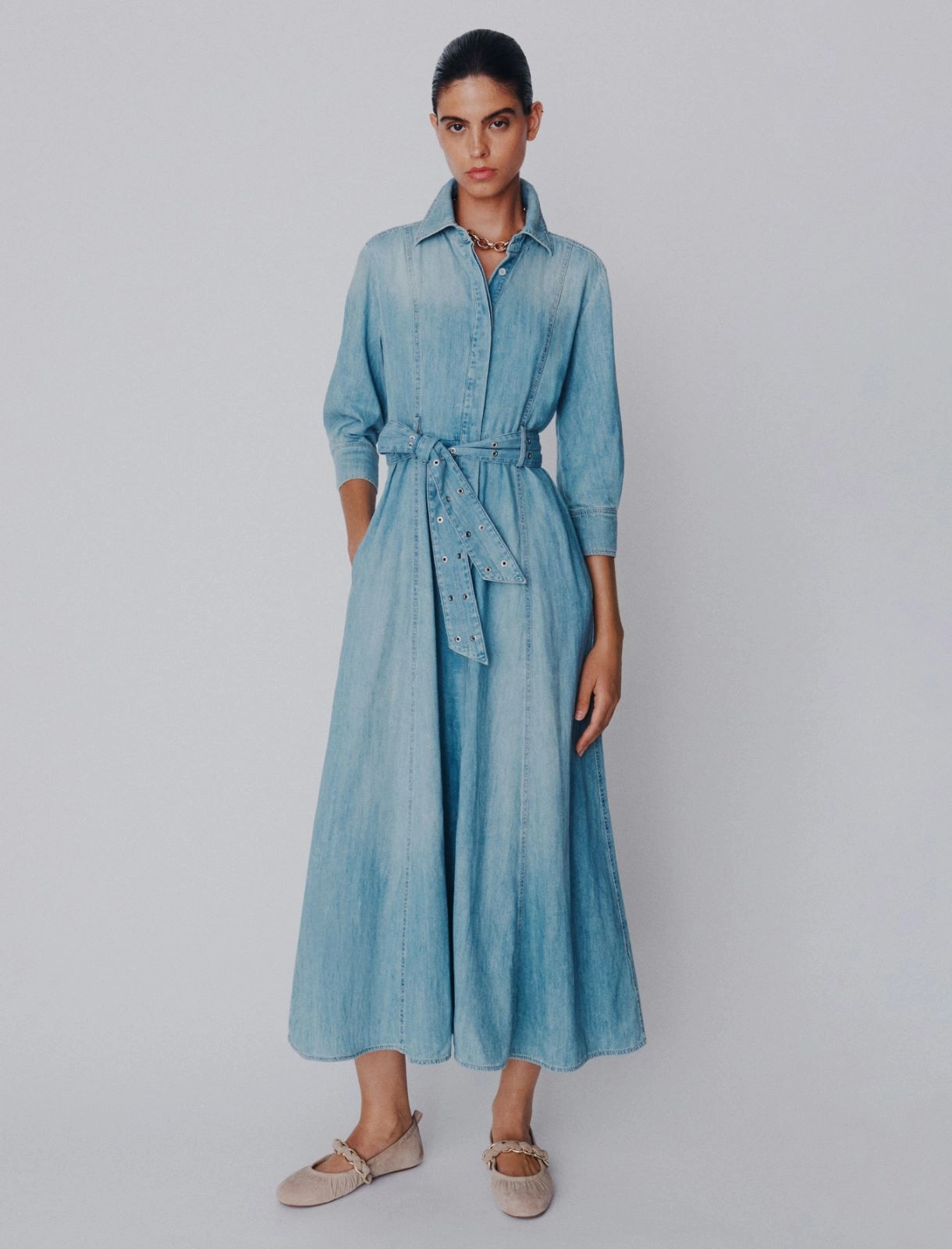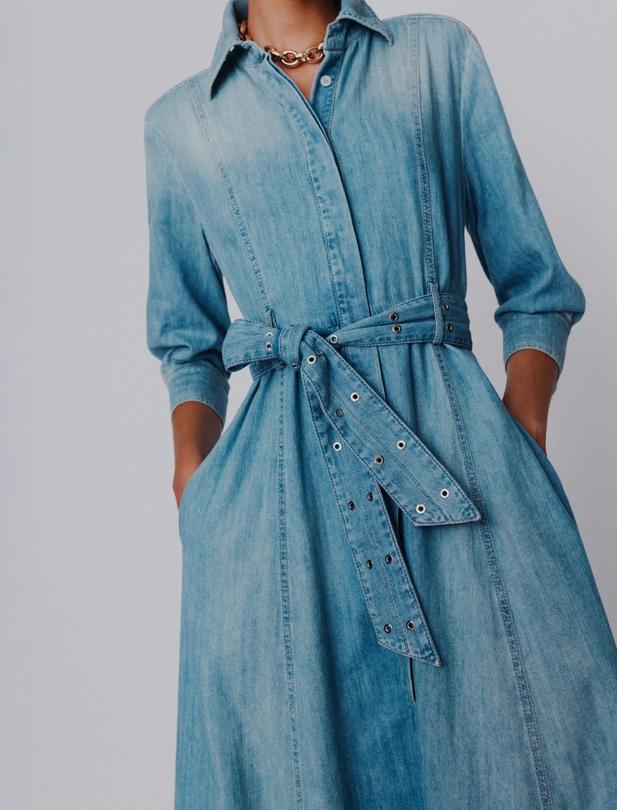 • Long shirt dress in pure cotton denim