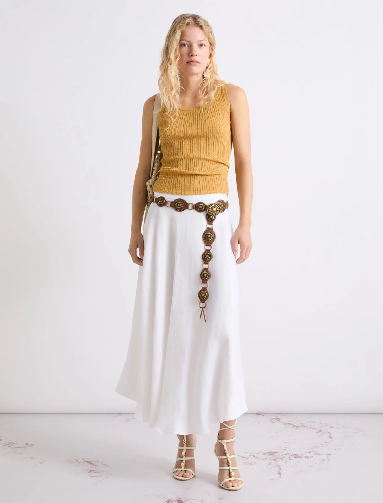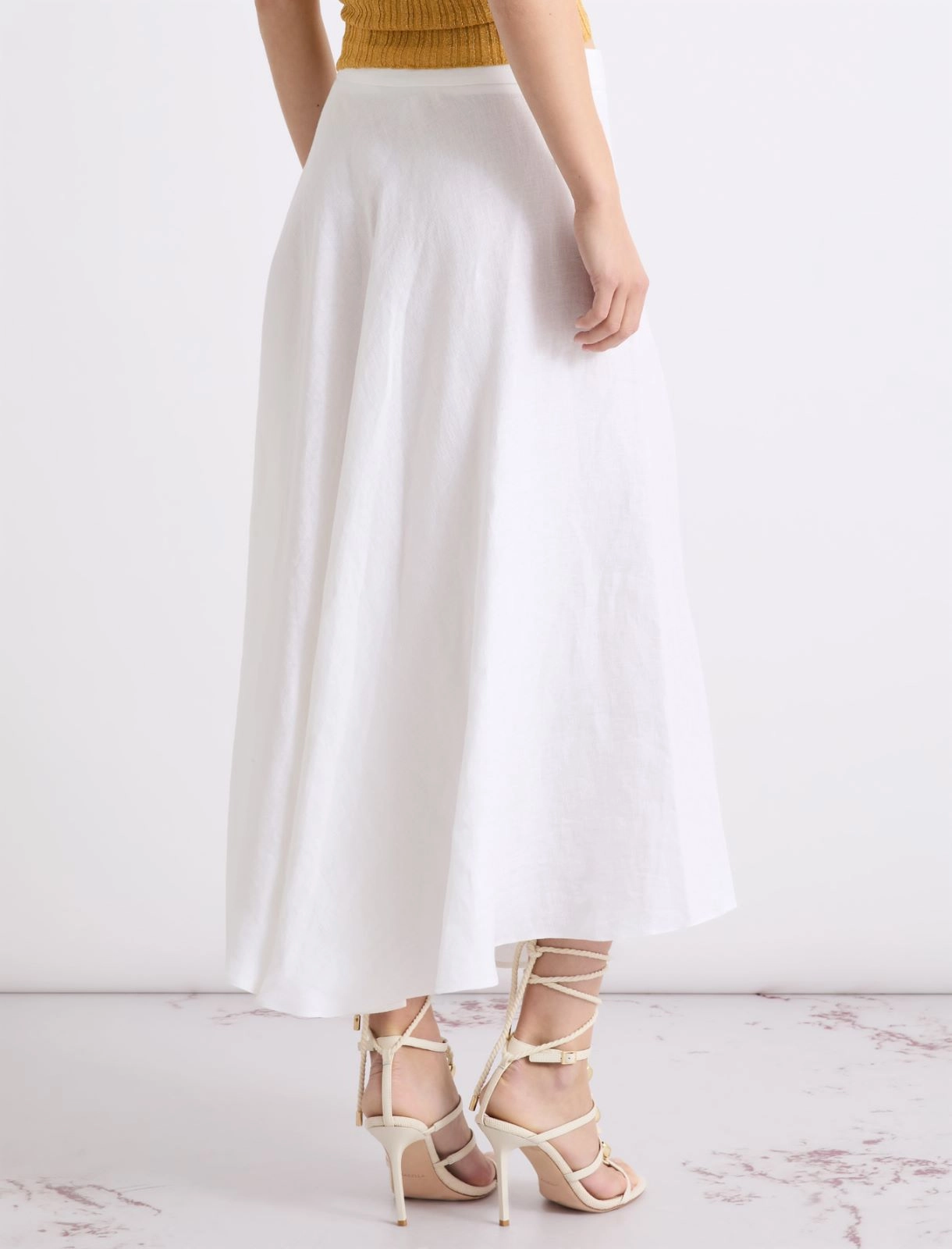 • Skirt in pure basketweave linen with faded treatment