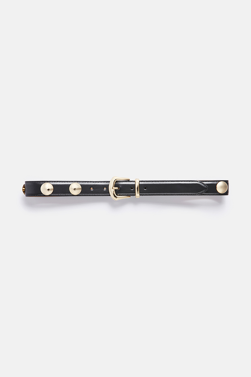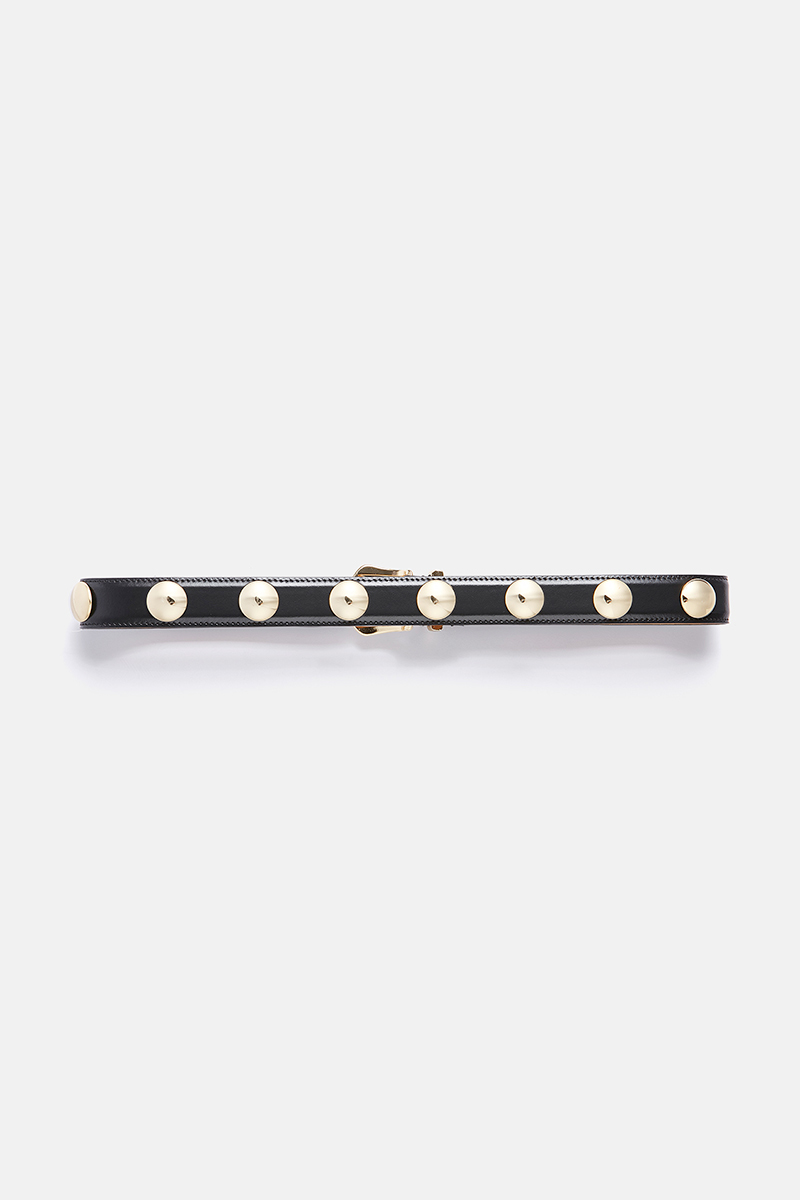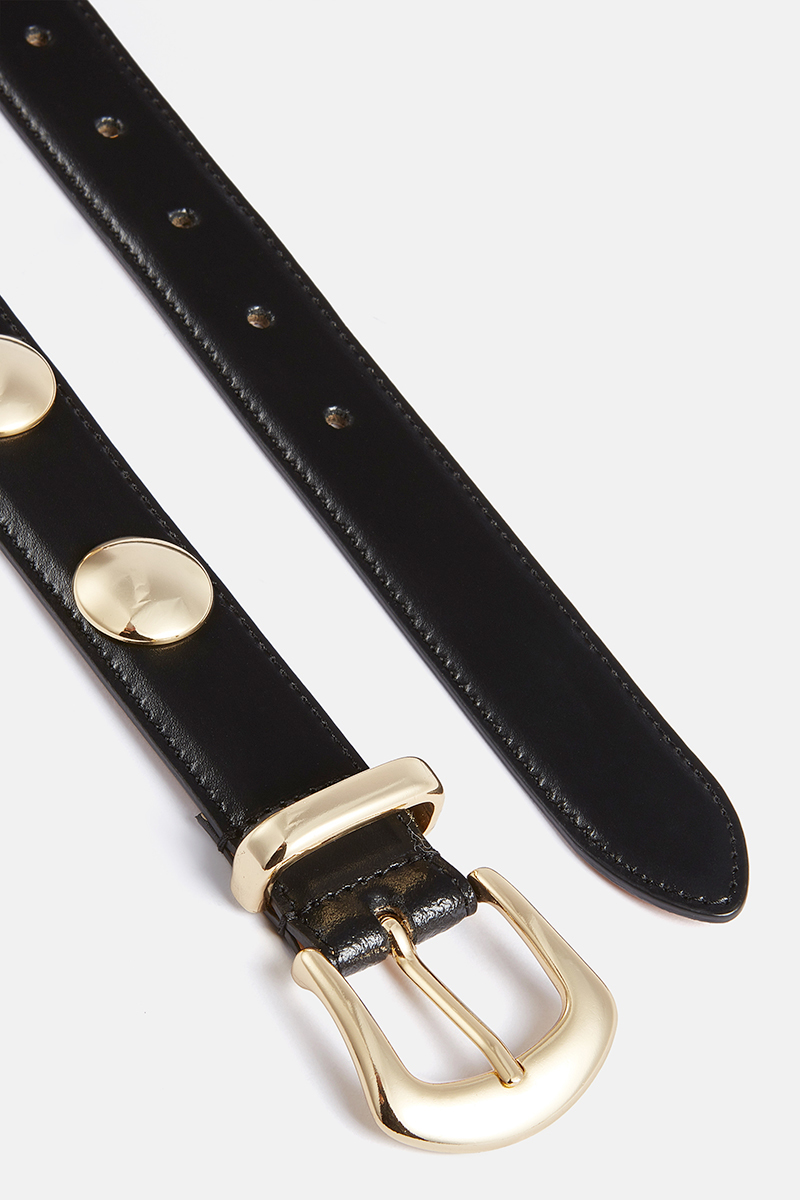 Δερμάτινη ζώνη από τριβή μοσχαριού, με χρυσά μεταλλικά καρφιά και πόρπες.